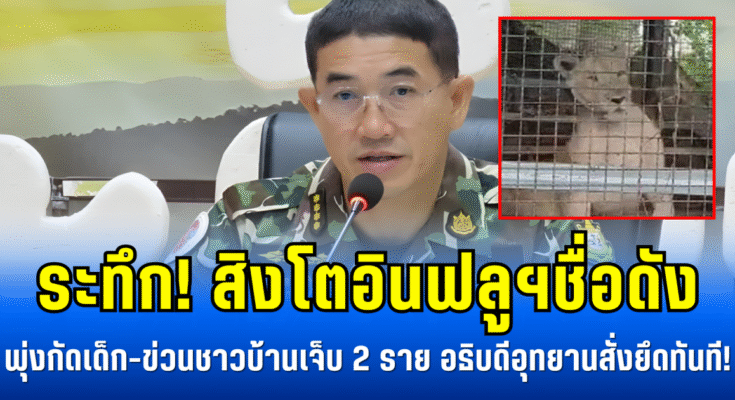 ระทึก!! สิงโตอินฟลูฯชื่อดัง พุ่งกัดเด็ก-ข่วนชาวบ้านเจ็บ 2 ราย อธิบดีอุทยานสั่งยึดทันที!