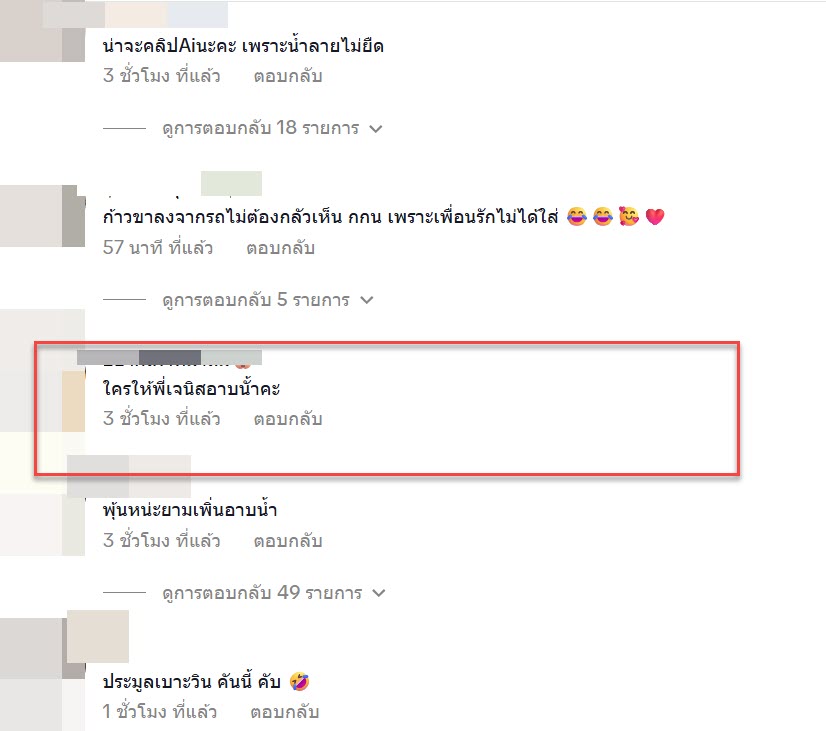 ซึ่งจากคลิปนี้หลายคนเห็นแล้วก็เข้ามาแสดงความคิดเห็นกันอย่างมากมาย”ใครให้พี่เจนิสอาบน้ำคะ