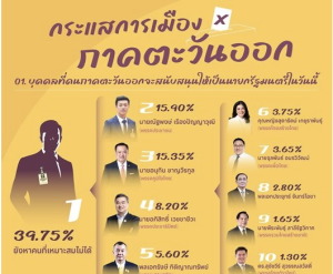 เท้ง-หนู’ สูสี โพลชี้ คนตะวันออก หนุน นายกฯ 15% เรตติ้ง ‘ปชน.’ 24.65%