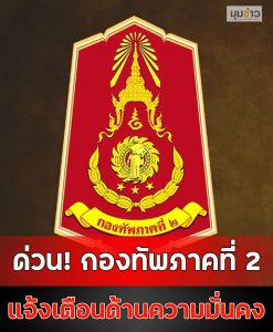 23 ธ.ค.68 เพจเฟซบุ๊ก กองทัพภาคที่ 2 โพสต์ข้อความระบุว่า แจ้งเตือนด้านความมั่นคง!!