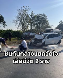 รถกระบะชนกับรถนั่งส่วนบุคคล กลางแยกวัดใจ ในพื้นที่ อ.สองพี่น้อง มีผู้เสียชีวิต 2ราย