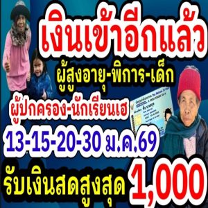 เงินเข้าอีกแล้ว มกราคม 69 รับเงินอะไรบ้าง ผู้สูงอายุ ผู้พิการ เงินเด็ก 4วันรวด รับเงินสดสูงสุด 1,000