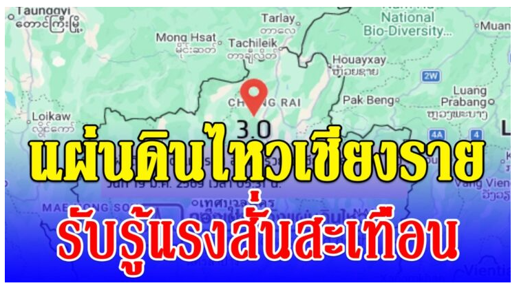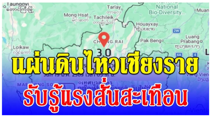 เมื่อเวลา 05.31 น. วันที่ 19 มีนาคม 2569 กองเฝ้าระวังแผ่นดินไหว กรมอุตุนิยมวิทยา รายงานเกิดแผ่นดินไหวขนาด 3.0 โดยมีจุดศูนย์กลางอยู่ที่ตำบลแม่สรวย อำเภอแม่สรวย จังหวัดเชียงราย ที่ความลึกเพียง 2 กิโลเมตร ซึ่งจัดเป็นแผ่นดินไหวระดับตื้น ส่งผลให้ประชาชนในหลายพื้นที่สามารถรับรู้แรงสั่นสะเทือนได้อย่างชัดเจน